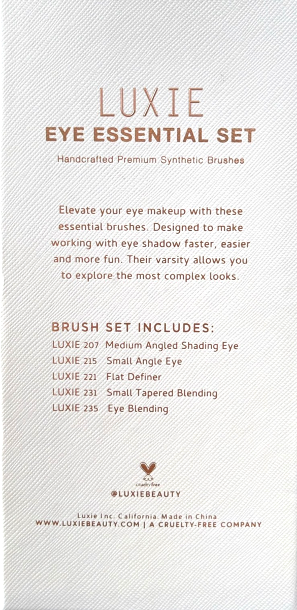 The Luxie 5-Pc. Rose Gold Eye Essential Brush Set (valued at $74) is a high-performance collection designed to achieve any eye look?from soft and natural to bold and dramatic. Each brush features Luxie?s iconic rose gold ferrules with chic pink handles and is made with premium synthetic bristles that are both vegan and cruelty-free.