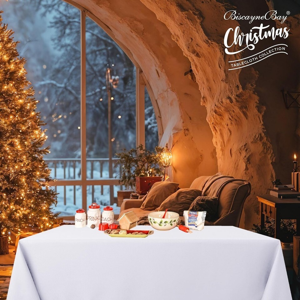 - Luxurious White Polyester Tablecloth 60 X 84 - Perfect for Dining & Parties