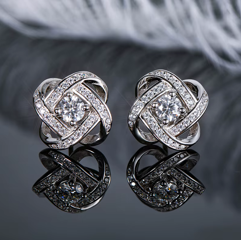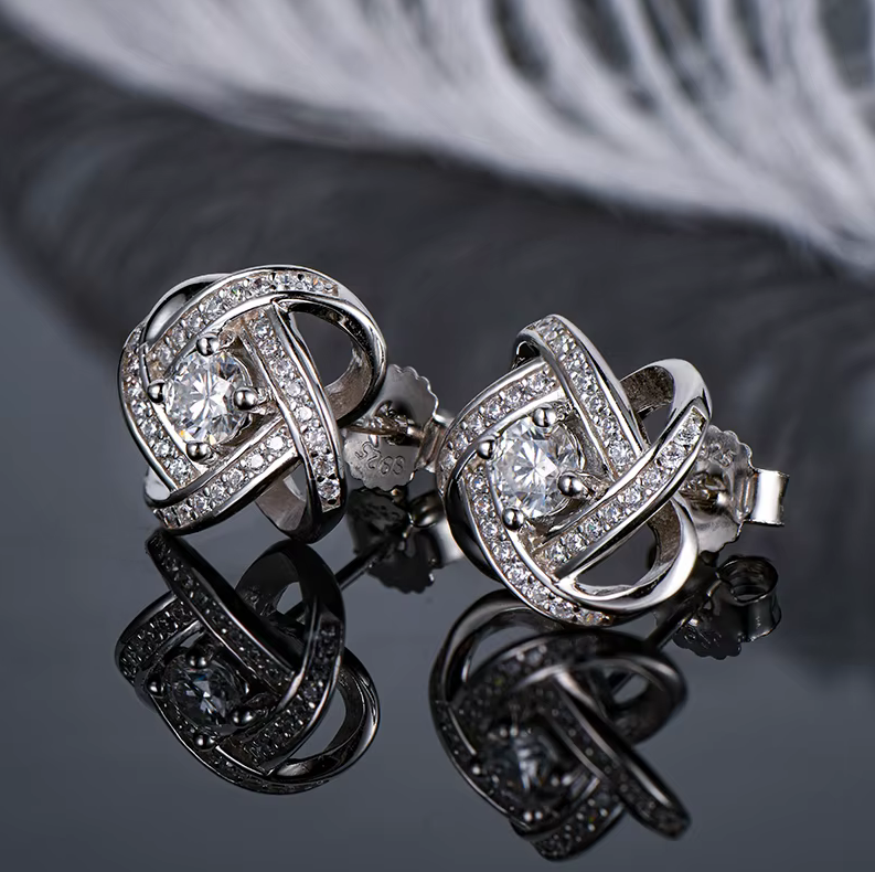 - Luxury 14K 925 Sterling Silver 0.6CT Twisted Knot Moissanite Stud Earrings