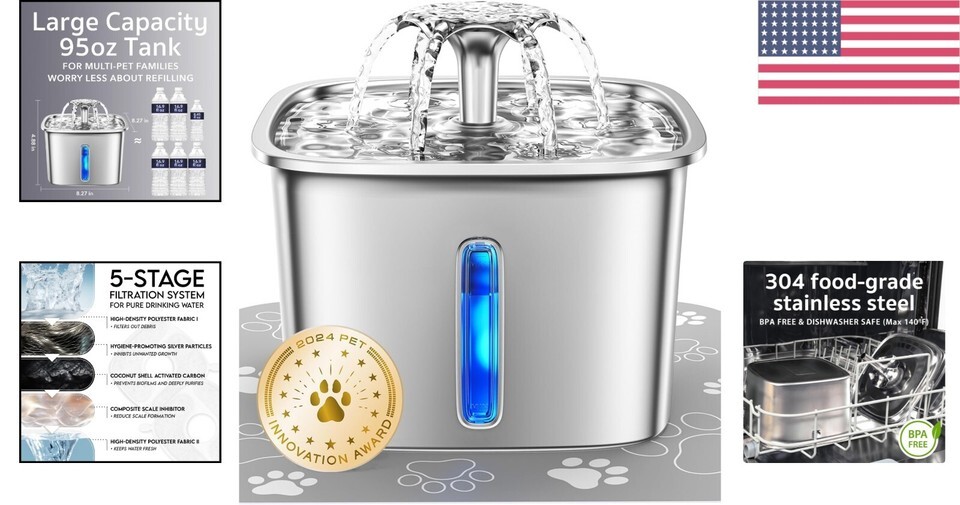 - Luxury Automatic Pet Water Fountain - 2.8L Stainless Steel with Filtration & Mat