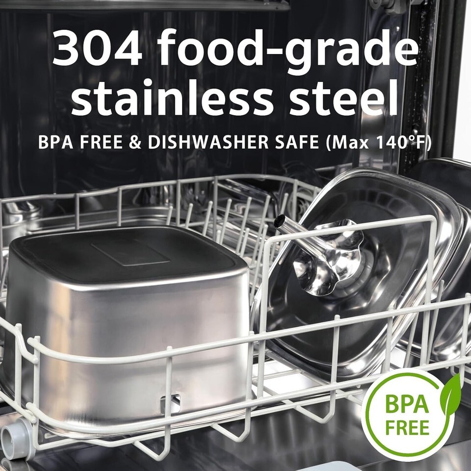 Upgraded Stainless Steel: Experience the perfect blend of aesthetics and hygiene. Our stainless steel construction is not only stunning but also dishwasher safe and BPA-free, ensuring peace of mind.