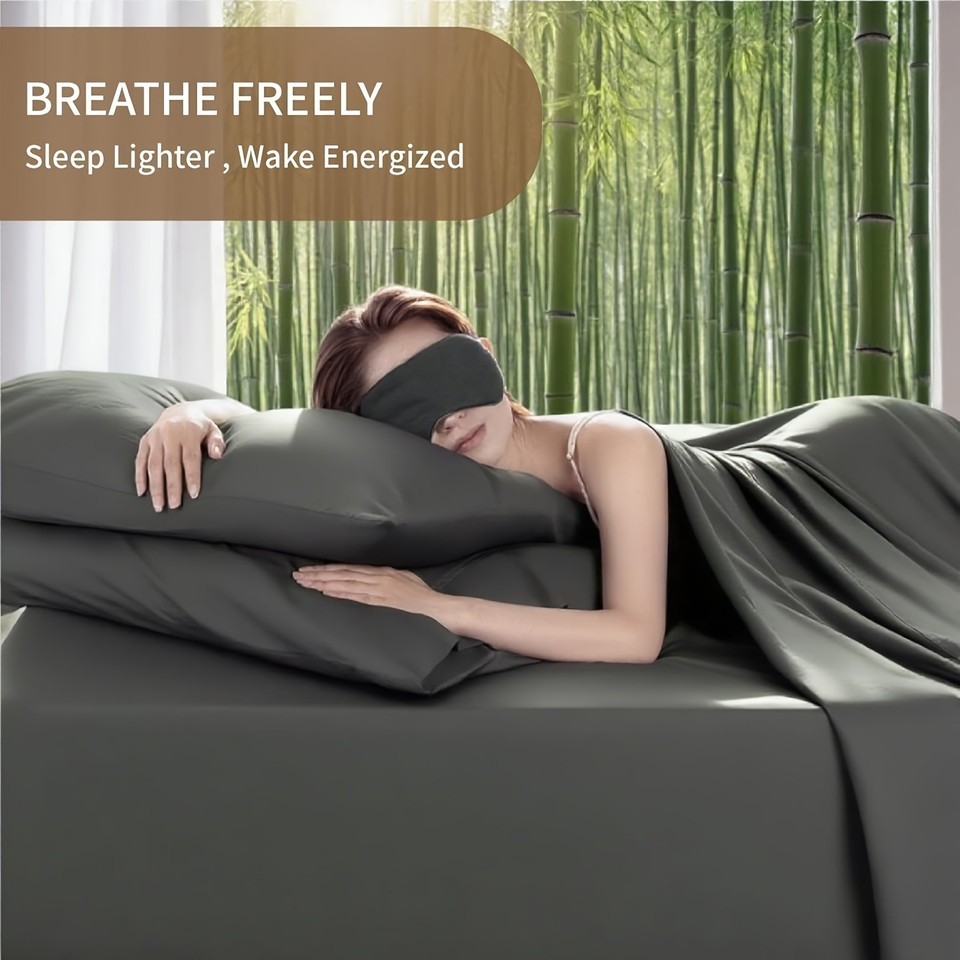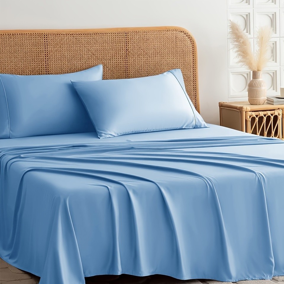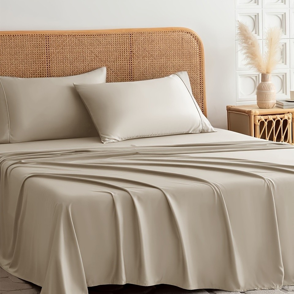 [Cooling Bed Sheet] 4pcs Luxury Soft Cooling Bamboo Blend Bed Sheet Set | Deep Pocket 14" Bed Sheet, Hotel Sheet Set, Fitted Sheet+Flat Sheet+Pillowcase, Luxuriously Soft Cooling Silky Sheet Set