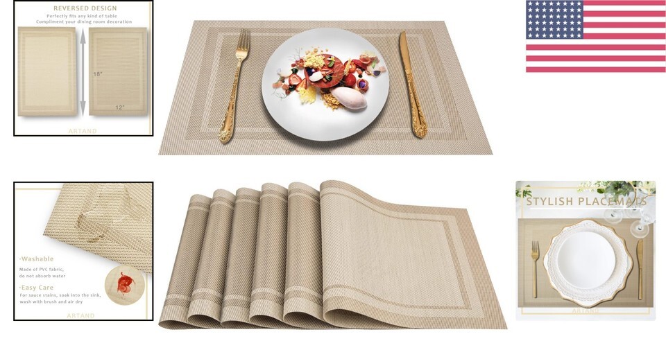- Luxury Beige Placemats Set of 6 - Woven, Heat Resistant, Perfect for Dining