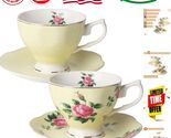 - Luxury Floral Tea Set - 8 oz Porcelain Cups with Coasters, Dishwasher Safe