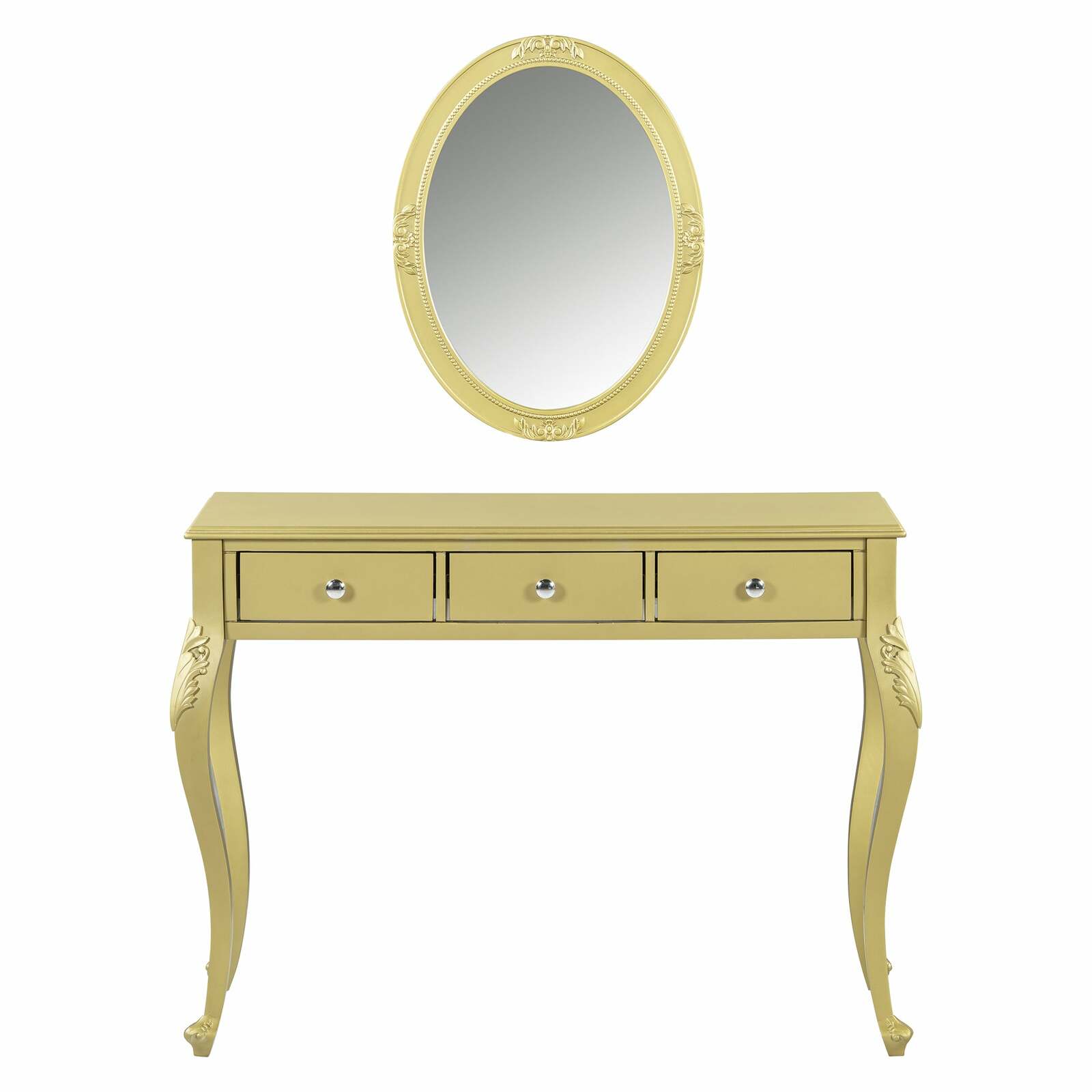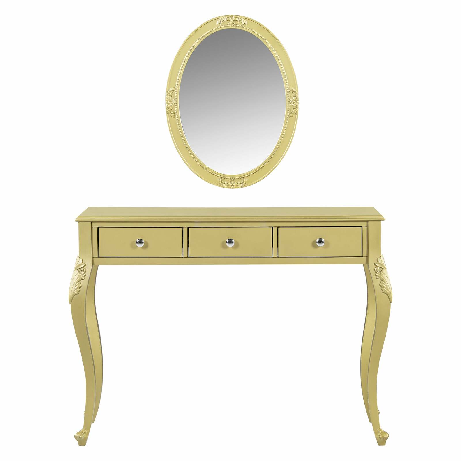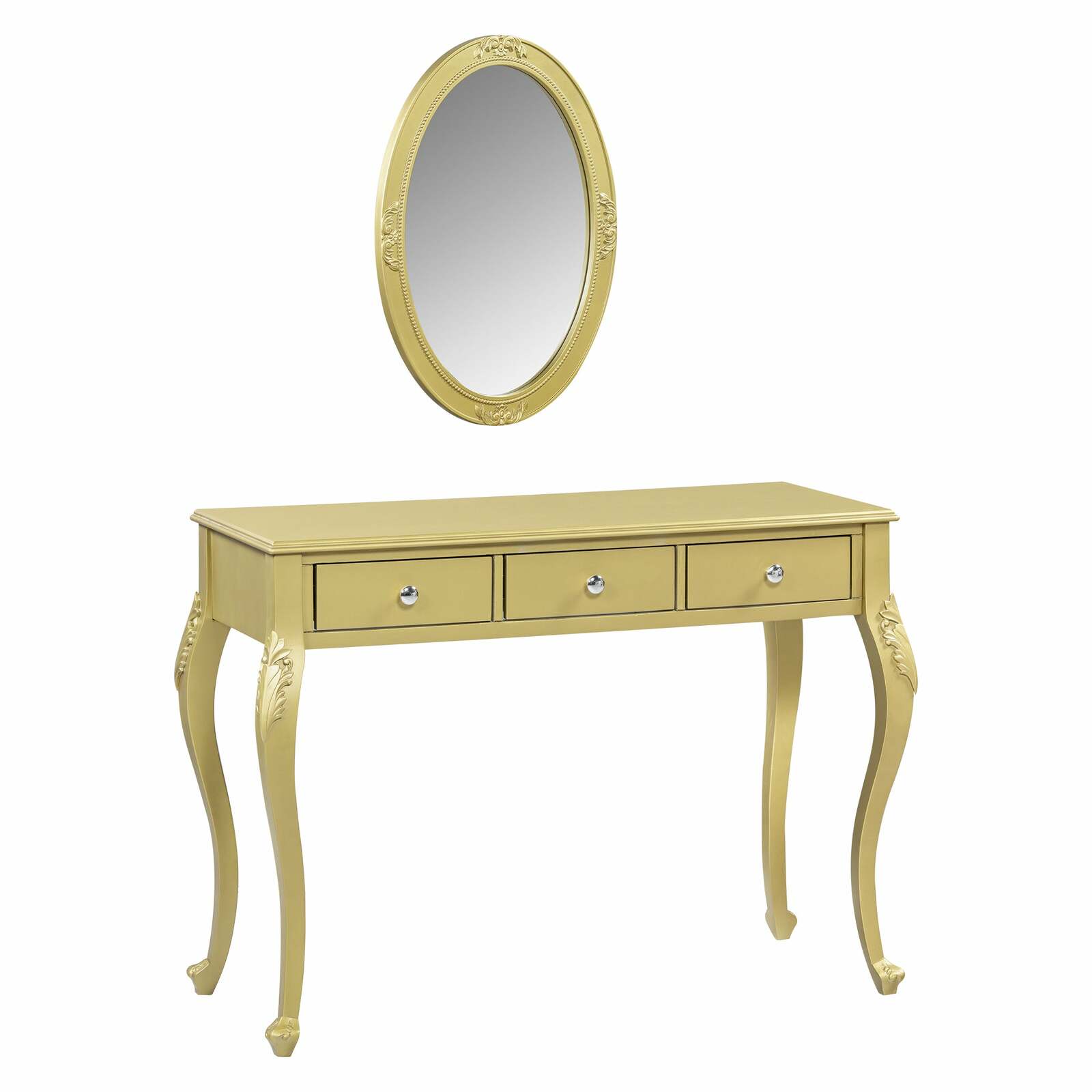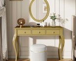 - Luxury Gold Makeup Vanity Dressing Table, Oval Mirror, 3-Drawer