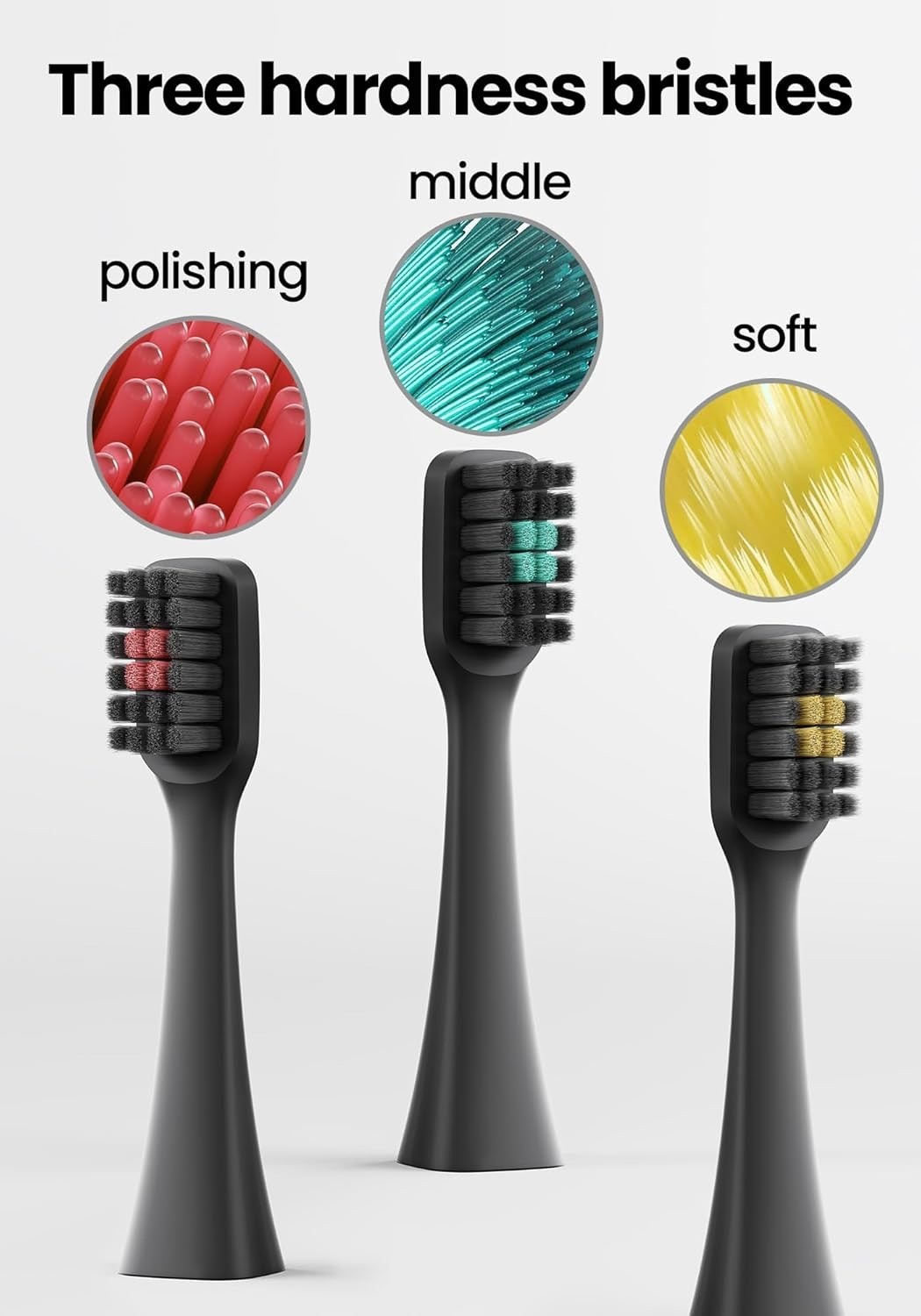 Try out the bristles of hardness you like best, Red-Polishing / Green-Medium / Yellow-Soft, they can be purchased separately