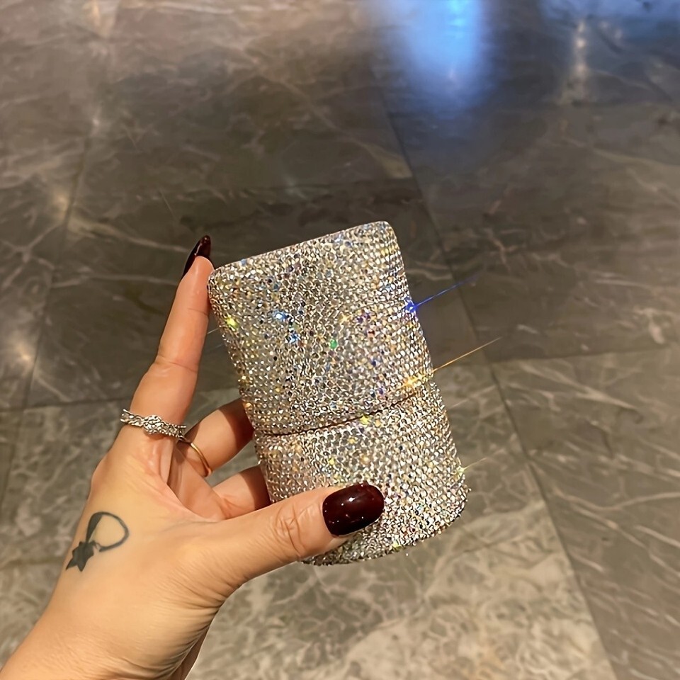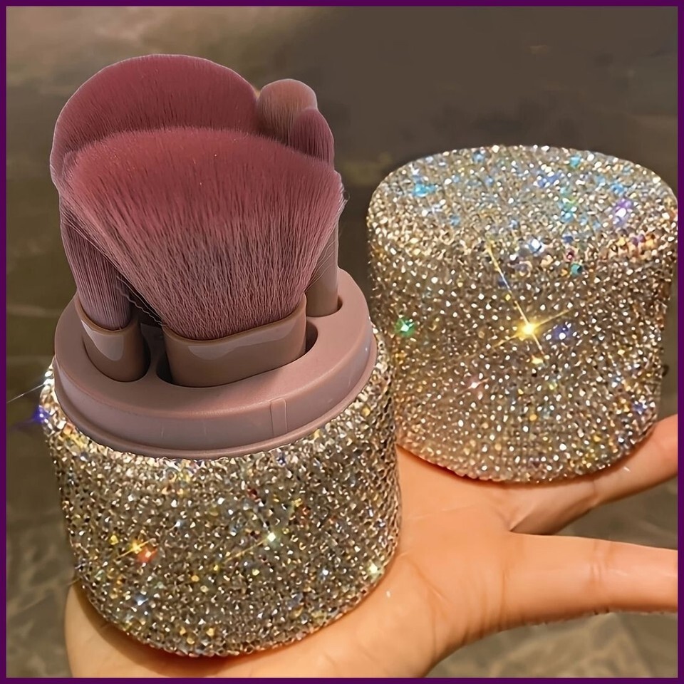 - Luxury Rhinestone Makeup Brush Set with Glitter Holder – Portable Dustproof Case