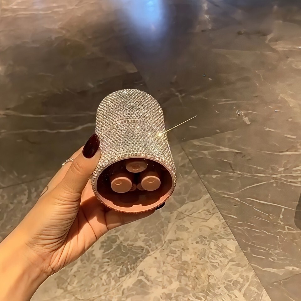 Designed for makeup lovers who enjoy a little bling, this set includes premium soft nylon bristles and a fully rhinestone-encrusted storage bucket with lid ? perfect for home or travel.
