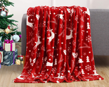 Luxury Velvet Super Soft Christmas Prints Fleece Blanket-Holiday Theme Home Decor Fuzzy Warm and Cozy Throws for Winter Bedding, Couch and Gift, 50 X 60 Inch, Burgundy Reindeer