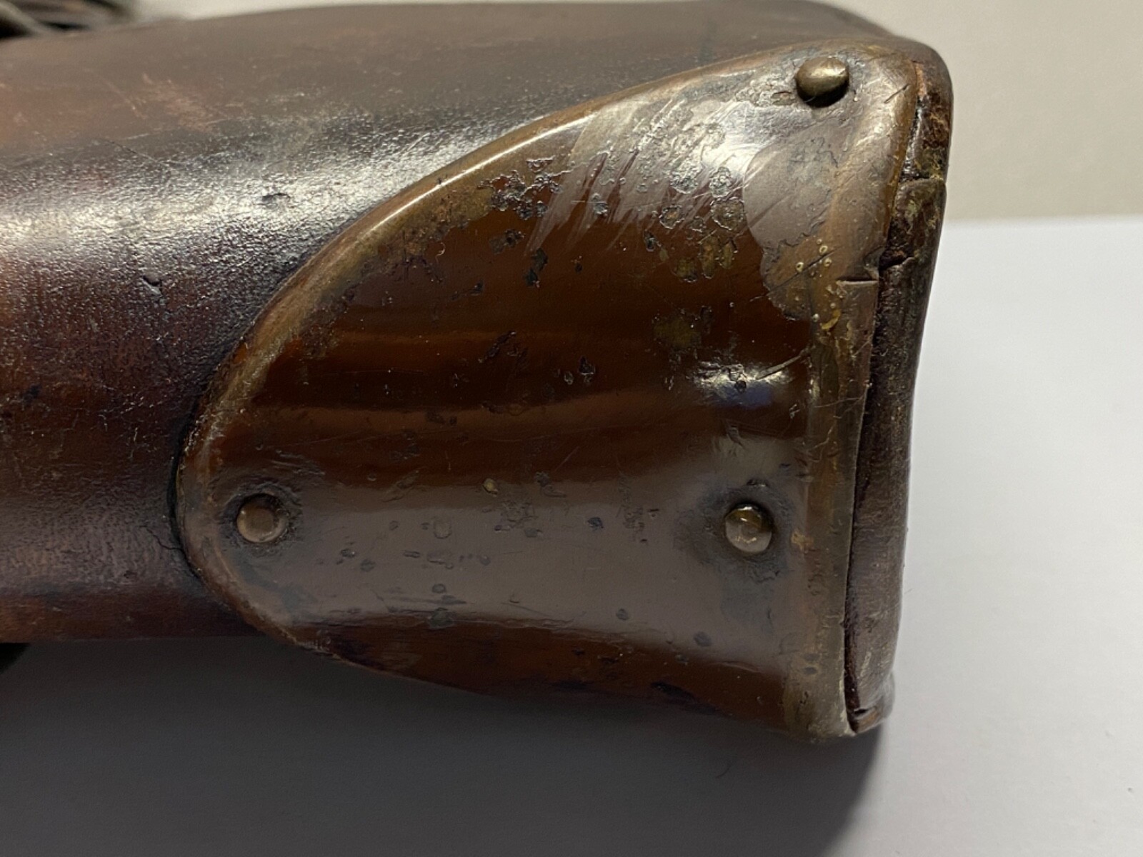 Brass throat plate: A brass throat plate reinforces the top of the scabbard, protecting the carbine's muzzle.