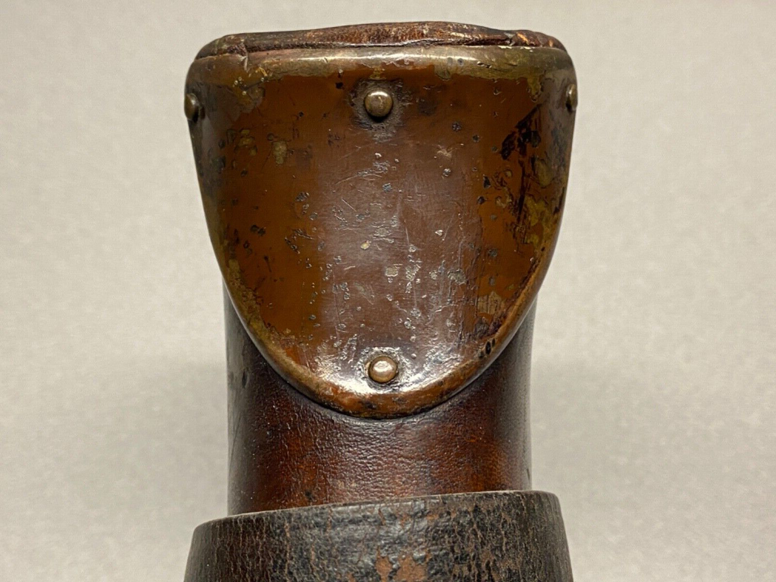 Snap hooks: Unlike later models, the Model 1902 scabbard does not feature snap hooks for quick attachment to the saddle.