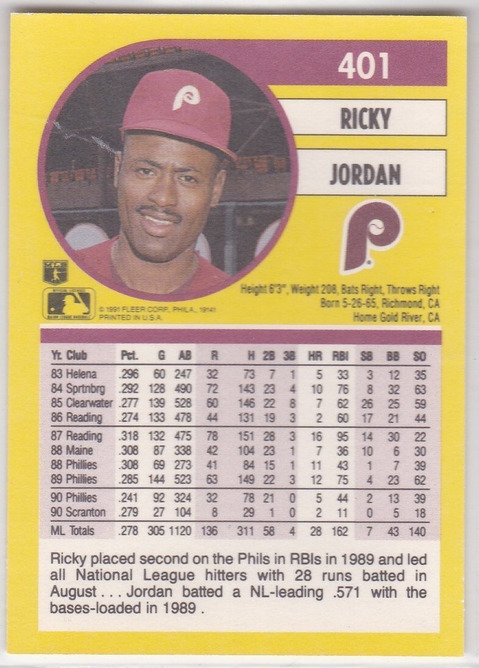 M) 1991 Fleer Baseball Trading Card - Ricky Jordan #401