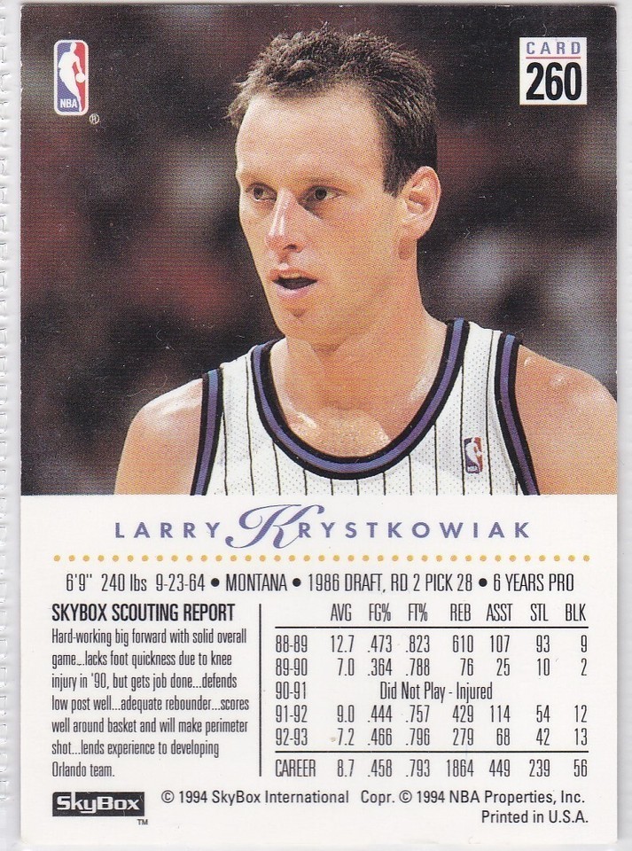 - M) 1993-94 Skybox Basketball Trading Card - Larry Krystkowiak #260
