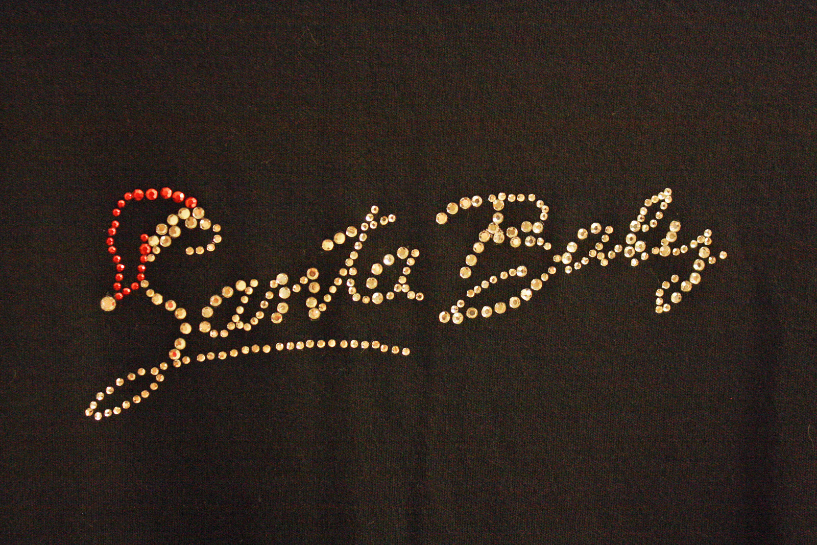 - M & C Sportwear Black Santa Baby Rhinestone Long Sleeve Shirt - Women's L