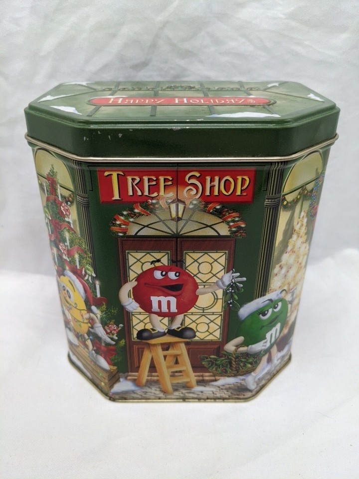- M&Ms Brand Christmas Village Series Brand Tree Shop Empty Cannister Tin