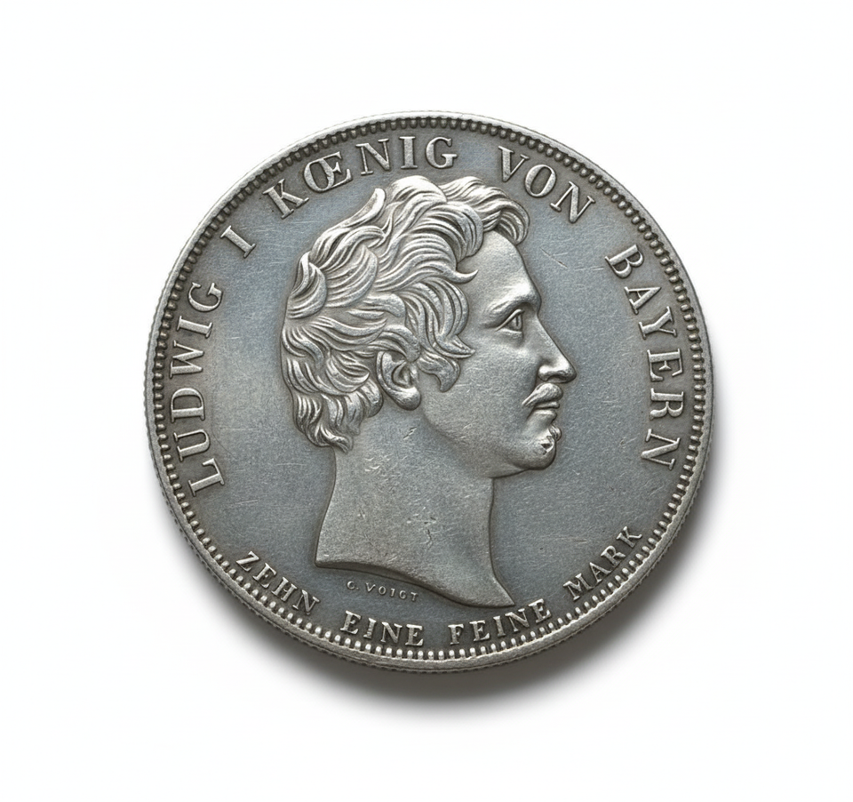Decouvrez cette captivante medaille de restriction historique 1835 Ludwig I Bavaria Zehn Ein Feine Mark, un objet de collection vraiment exceptionnel pour les amateurs d'histoire europeenne et d'art numismatique. Cette piece finement travaillee presente le profil distingue de Louis Ier, roi de Baviere, sur son avers, entoure de son titre royal et de l'inscription "TEEN EIN FEINE MARK", signifiant une norme de poids specifique pour cette medaille fantastique. Le revers represente magnifiquement un monument gothique, commemorant la « Separation du roi ». Therese de sa femme bavaroise le roi Otto (separation de la reine Therese de ses femmes bavaroises au roi Otto) a Aibling, un evenement historique poignant de 1835. Ce jeton commemoratif offre un apercu de l'histoire royale bavaroise et des styles architecturaux de l'epoque. Presente dans une finition epreuve, il se presente comme une ?uvre d'art exquise et un objet de collection tres recherche. Un ajout ideal a toute collection de medailles historiques, offrant a la fois un attrait esthetique et une profondeur historique. Mots cles : restriction, objet de collection, medaille, historique, commemoratif, numismatique, objet de collection, jeton, epreuve, ?uvre d'art, bavaroise, fantaisie, antique, allemande, monarchie.