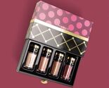This coordinated kit for face and eyes comes in a stylish little box featuring a fuchsia and burgundy design with gold accents.