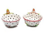 Deck the tabletops with the set of two ceramic Patience Brewster Dash Away Bowls. Decorated with black polka dots, they feature Dash Away Santa and Mrs. Claus on the rim. They?re sure to add delight to your holiday gatherings