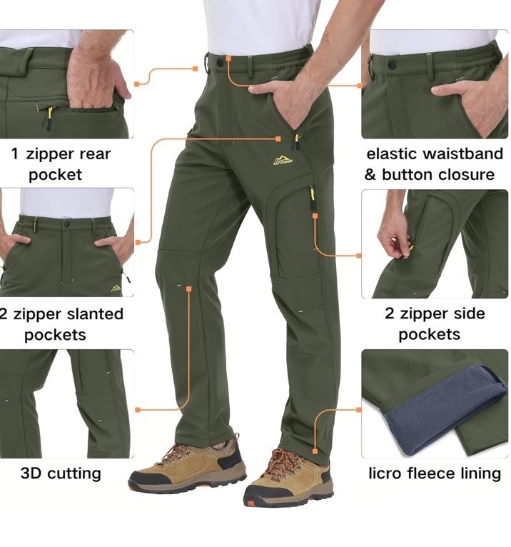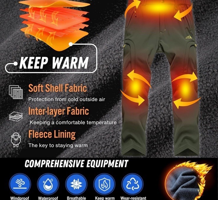 - MAGCOMSEN Men Winter Pant 5 Zip Pocket Snow Ski Fleece Lined Water Resistant 34