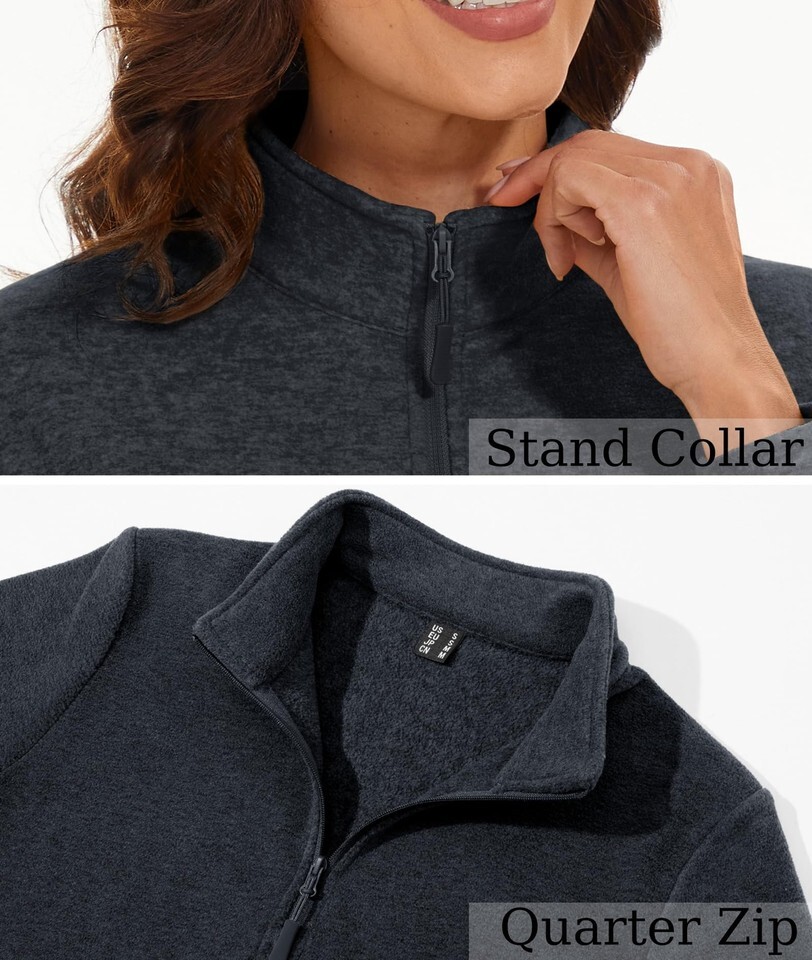 - MAGCOMSEN Women's Zip Fleece Pullover Lightweight Stand Collar Black XL