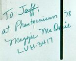 Maggie inscribed a b/w still photo from 1971's THX 1138, George Lucas’ directorial debut, at Phantasmicon, a 1978 sci-fi convention, with green Sharpie. Since the still didn’t have Maggie’s image, the signed 2.5x3-inch segment has been removed and placed with a color widescreen scene showing her as LUH 3417, a dystopian future world designation, that will make a nice matte and frame combo.