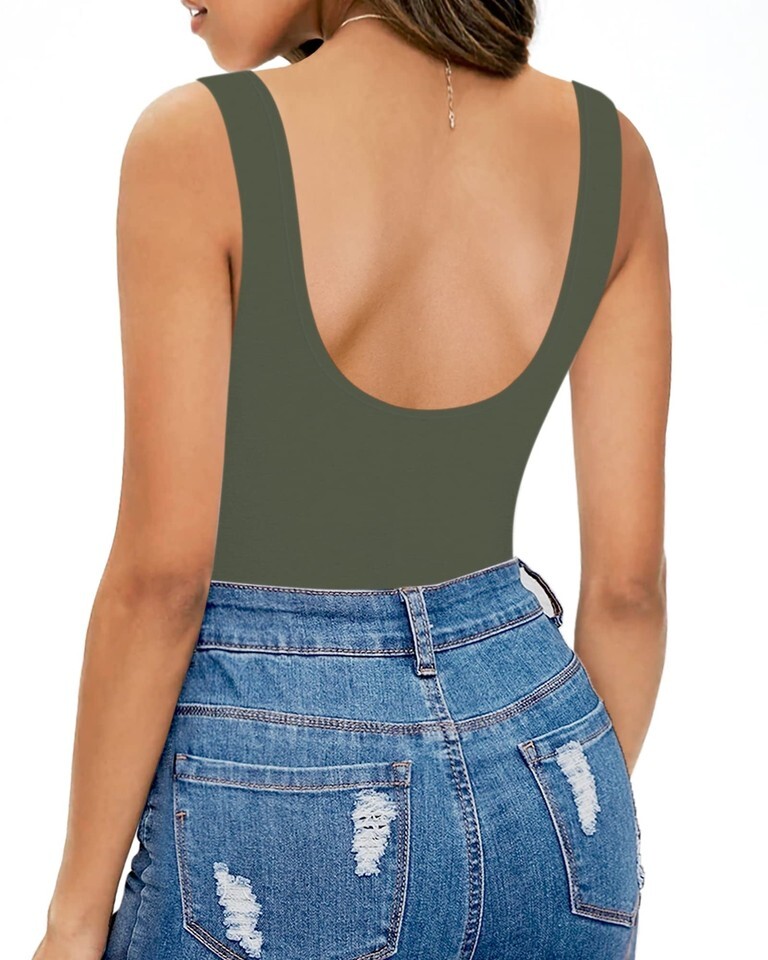 MANGOPOP Women's Tank Tops Body Suits Sexy Backless Round Neck Sleeveless Bodysuits for Women