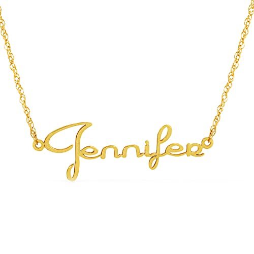 Product description: MARGARUITE NEW FONT 14k Solid Gold Custom Name Necklace Personalized Customizable Custom Made Any Name Mother Day Gift Women Nameplate Dainty Men Girl Scripture Handcrafted Made in USA Fine Jewelry High Polished This customizable necklace is handcrafted in the USA here in Los Angeles California. You can enter any text or name - sweet words longitude, coordinates, names, initials, special months to design your very own unique necklace, makes you special, and show off your personality, loyalty ingenuity. Treat yourself or someone special to a bold, beautiful necklace that is truly one of a kind! With numerous designs available to complement your unique style perfectly! Click on ''Customize Now'' to make it your own. One name or word up to 10 characters no special characters. First Letter capitalized - up to letters can be capitalized. perfect gift for women, girls, mom, wife, girlfriend, sister, kids, child, aunt, best friends, bridesmaid, loved ones or a special treat for yourself, and all occasions: Mother's Day, Valentines, Wedding, Anniversary, Birthday, Christmas. Chain Length Available: 14inch, 16 Inch, 18inch, 20 Inch, 22 Inch. Chain Thickness 1.15mm Available Gold Color ? 14K Solid Yellow Gold, 14k Solid Rose Gold, 14k Solid White Gold Stamped Gold 14k Solid MADE IN USA. Gift Box Available.