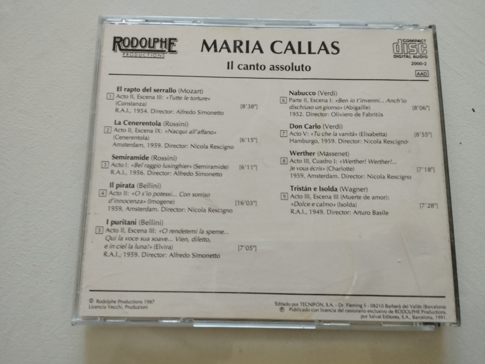 Maria Callas Il Canto Assoluto Salvat 1987 Mozart Rossini Verdi Wagner - CD