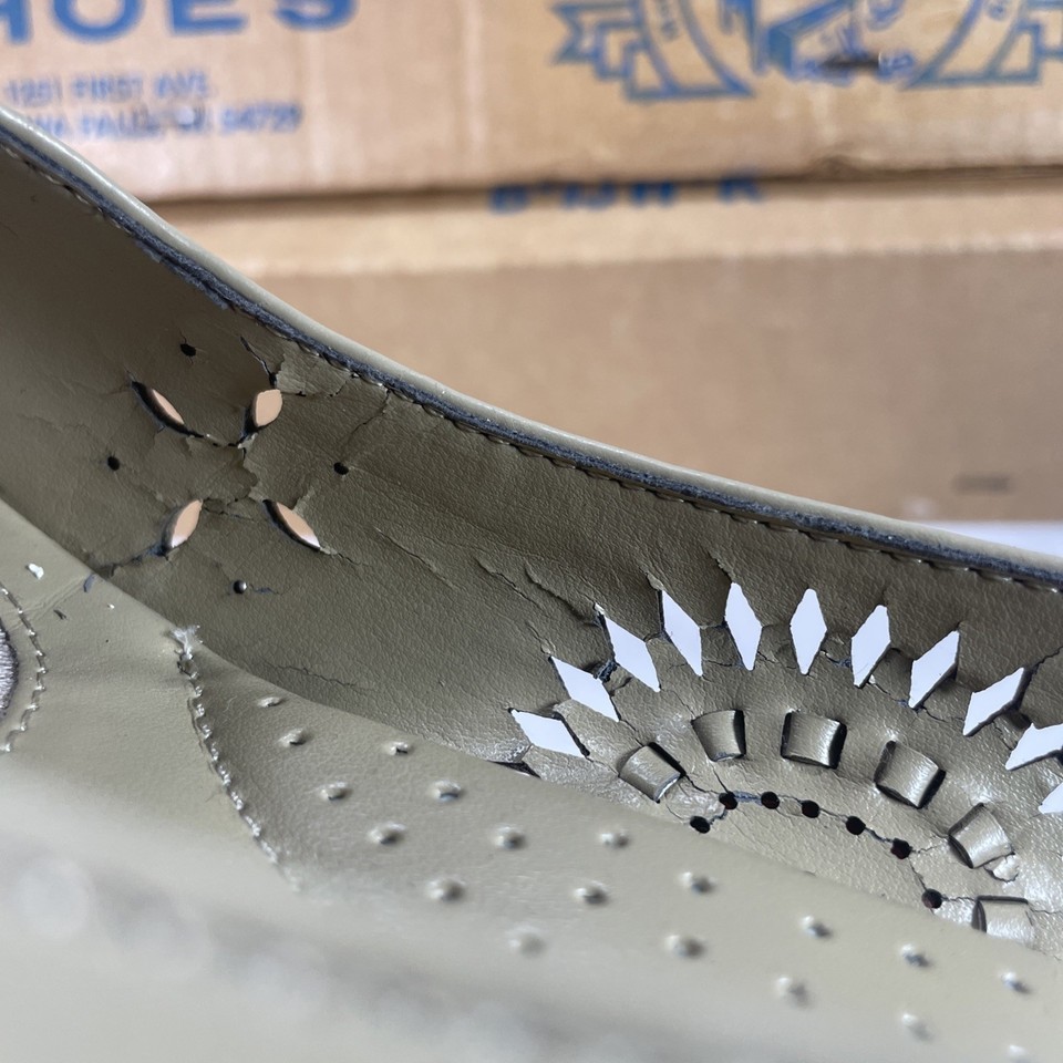 Preowned. They are still a pretty shoe but are an older pair and do have some cracks in the leather. See photos.