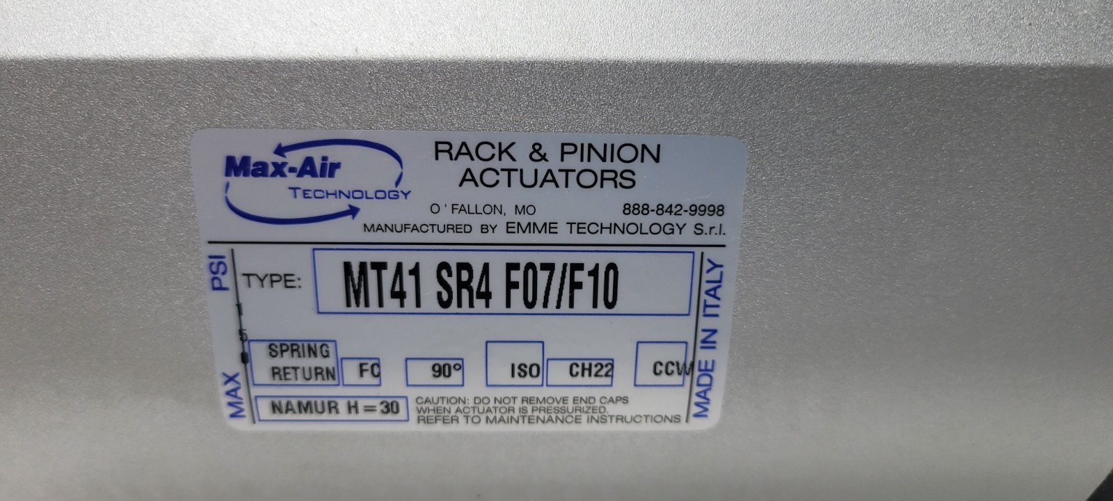 - MAX-AIR TECHNOLOGY MT41 SR4 F07/F10 CH22 150PSI Rack & Pinion Actuator
