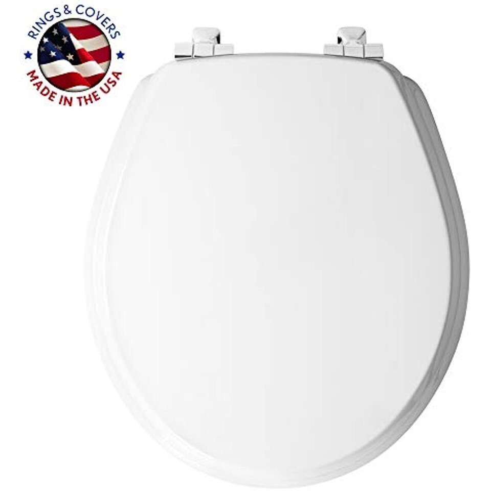 MAYFAIR 826CHSL 000 Benton Toilet Seat with Chrome Hinges will Slow Close and Never Come Loose, ROUND, Durable Enameled Wood, White