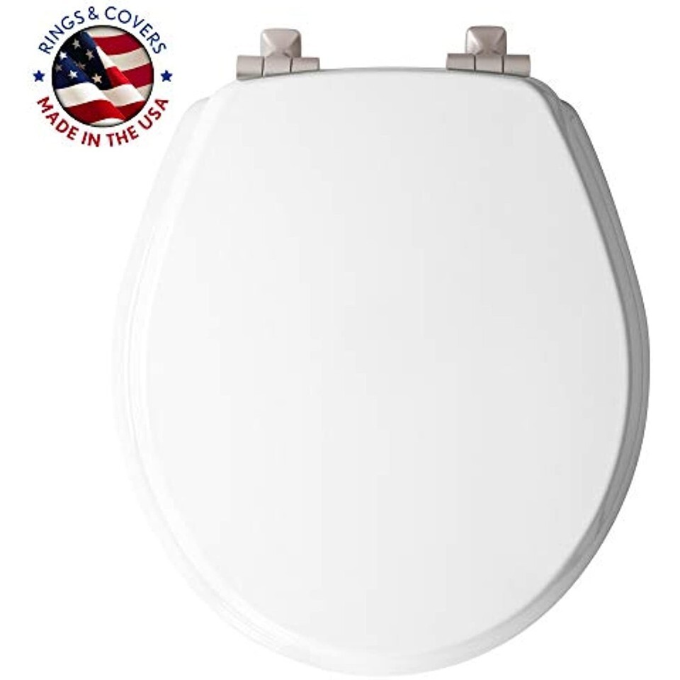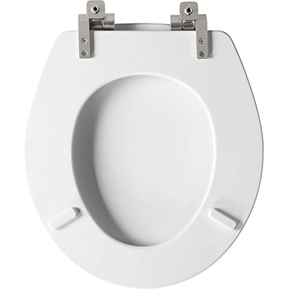 MAYFAIR 826NISL 000 Benton Toilet Seat with Brushed Nickel Hinges will Slow Close and Never Come Loose, ROUND, Durable Enameled Wood, White