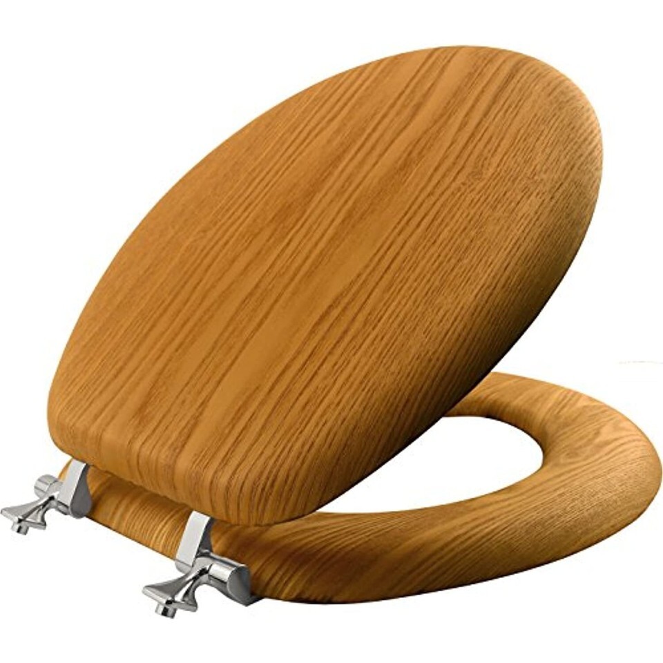 From the Manufacturer Mayfair ? For over 60 years, Mayfair has been bringing quality products with innovation and style to homes throughout North America. Mayfair toilet seats provide a wide variety of designs to easily integrate into any bathroom. The needs of customers are at the forefront of design with unmatched features and benefits that make everyday lives easier. The Mayfair brand is part of Bemis Manufacturing Company, the world?s largest manufacturer of toilet seats. Founded in 1901, and in the fourth generation of family ownership, Bemis has grown from a maker of furniture and wooden wagons to an international enterprise with manufacturing and warehousing facilities worldwide. In addition to manufacturing toilet seats, Bemis is one of North America?s top non-automotive producers of contract plastic injection-molded components. With a continued commitment to the worldwide community, Bemis Manufacturing Company strives to set the standard for ecological responsibility, conservation and preservation. Product Description This Mayfair Natural Reflections Veneer toilet seat bring natural beauty to your bathroom without splitting or cracking. The classic non-tarnish chromemetal hinges are stylish and long-lasting. Fits all manufacturers' round bowls in the US and Canada. NOTE: Colors on a website or printed from a website can vary drastically from the actual color of the toilet seat due to monitor and printer settings. NOTE: Colors on a website or printed from a website can vary drastically from the actual color of the toilet seat due to monitor and printer settings. The colors on this page are for approximate visual use and should not be used to match colors exactly to a toilet bowl.