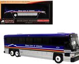 2001 MCI D4000 Coach Bus "Gray Line of Alaska" Dark Blue with Stripes "Vintage Bus Motorcoach Collection" Limited Edition to 504 pieces Worldwide 1/87 (HO) Diecast Model by Iconic Replicas