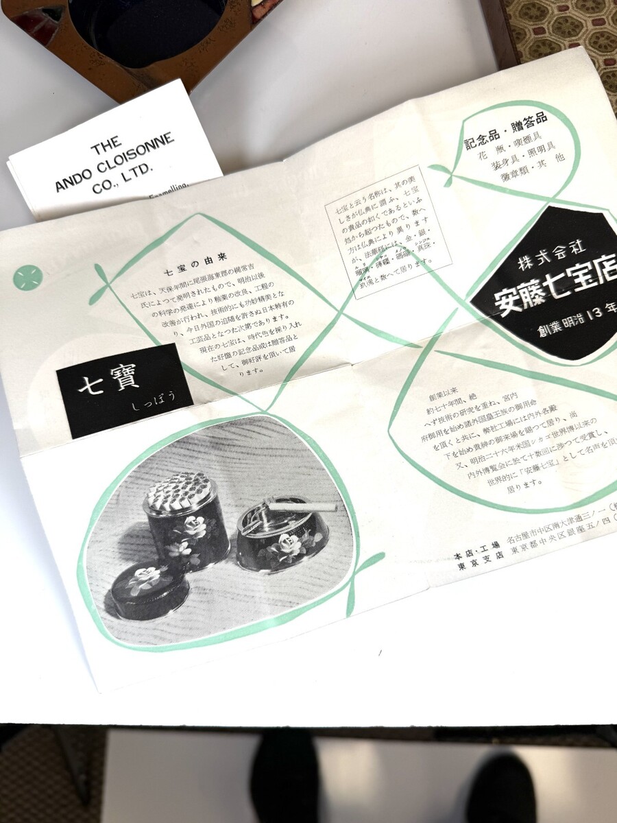MCM Ando Cloisonne Japanese Trinket Box & Tray w/ Display Box & Original Papers