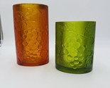 - MCM Sascha Brastoff Candle Holder Vase Signed Green Amber Embossed Fruit