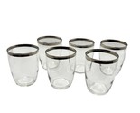 MCM Set 6 Vintage Clear Glass Tumblers With Silver Rim