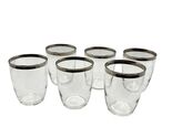 MCM Set 6 Vintage Clear Glass Tumblers With Silver Rim