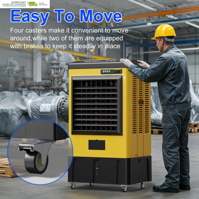Easy Mobility with Locking Casters: Four heavy-duty wheels (2 lockable) let you move the cooler effortlessly between spaces?backyard, garage, gym, or outdoor areas?bringing instant cooling wherever needed.