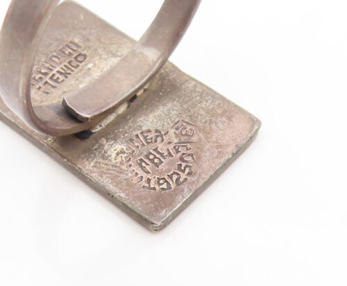 MEXICO 925 Silver - Vintage Adjustable Carved Rectangular Ring Sz 8 - RG27232