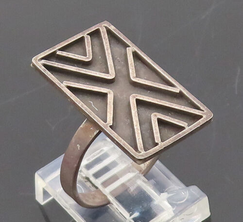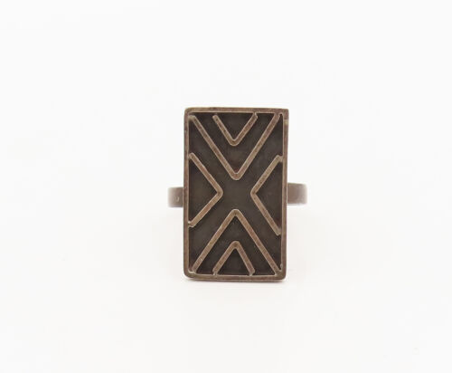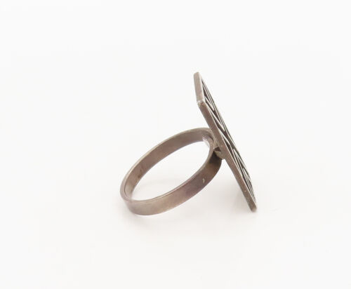 - MEXICO 925 Silver - Vintage Adjustable Carved Rectangular Ring Sz 8 - RG27232