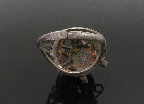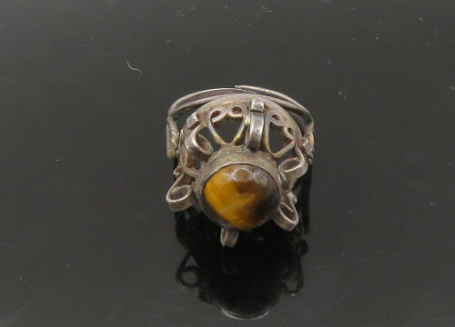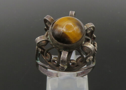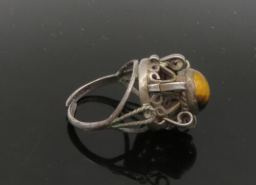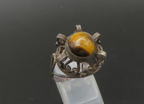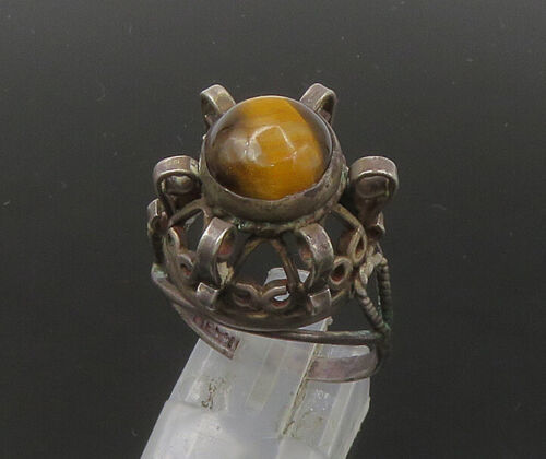 - MEXICO 925 Silver - Vintage Tiger's Eye Adjustable Cocktail Ring Sz 8 - RG22762
