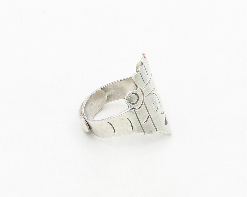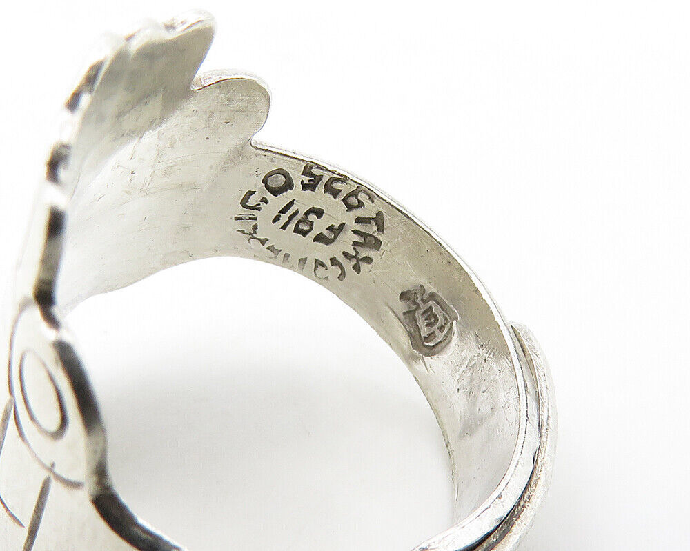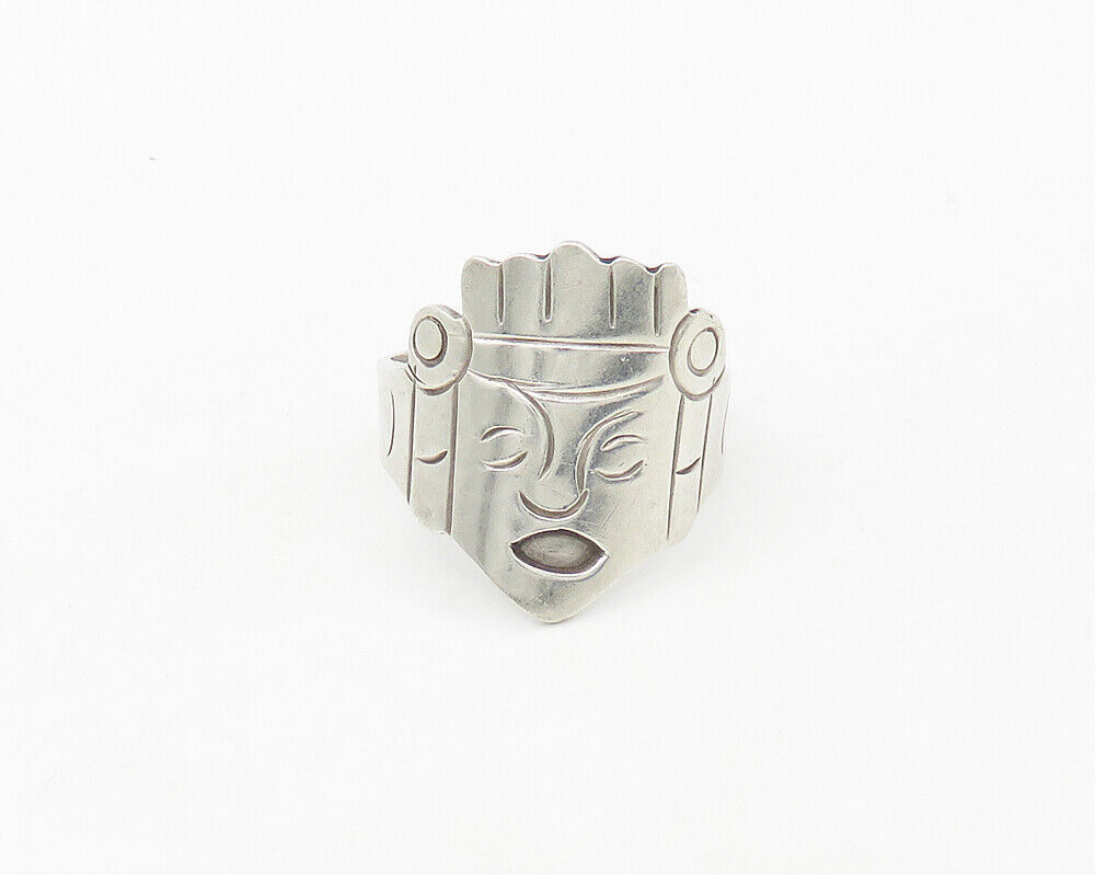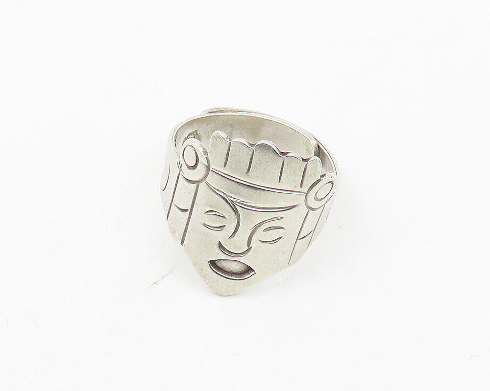 MEXICO 925 Silver - Vintage Warrior Head Adjustable Band Ring Sz 7 - RG17511
