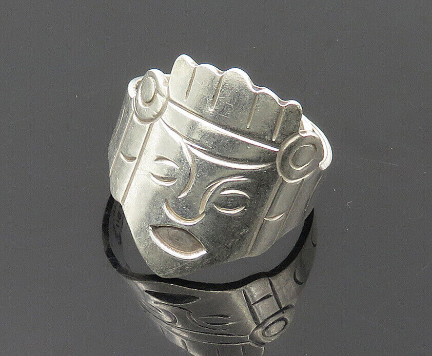 - MEXICO 925 Silver - Vintage Warrior Head Adjustable Band Ring Sz 7 - RG17511