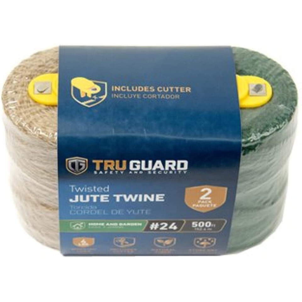 Tru-guard, 2 pack, Green jute twine, 4 lb safety work load, with bonus cutter, spool, use in gardens, packaging, Crafts, one natural.