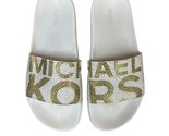 MICHAEL KORS Womens White And Gold Rhinestone Gilmore Slip On Sandals Slides Size 8M