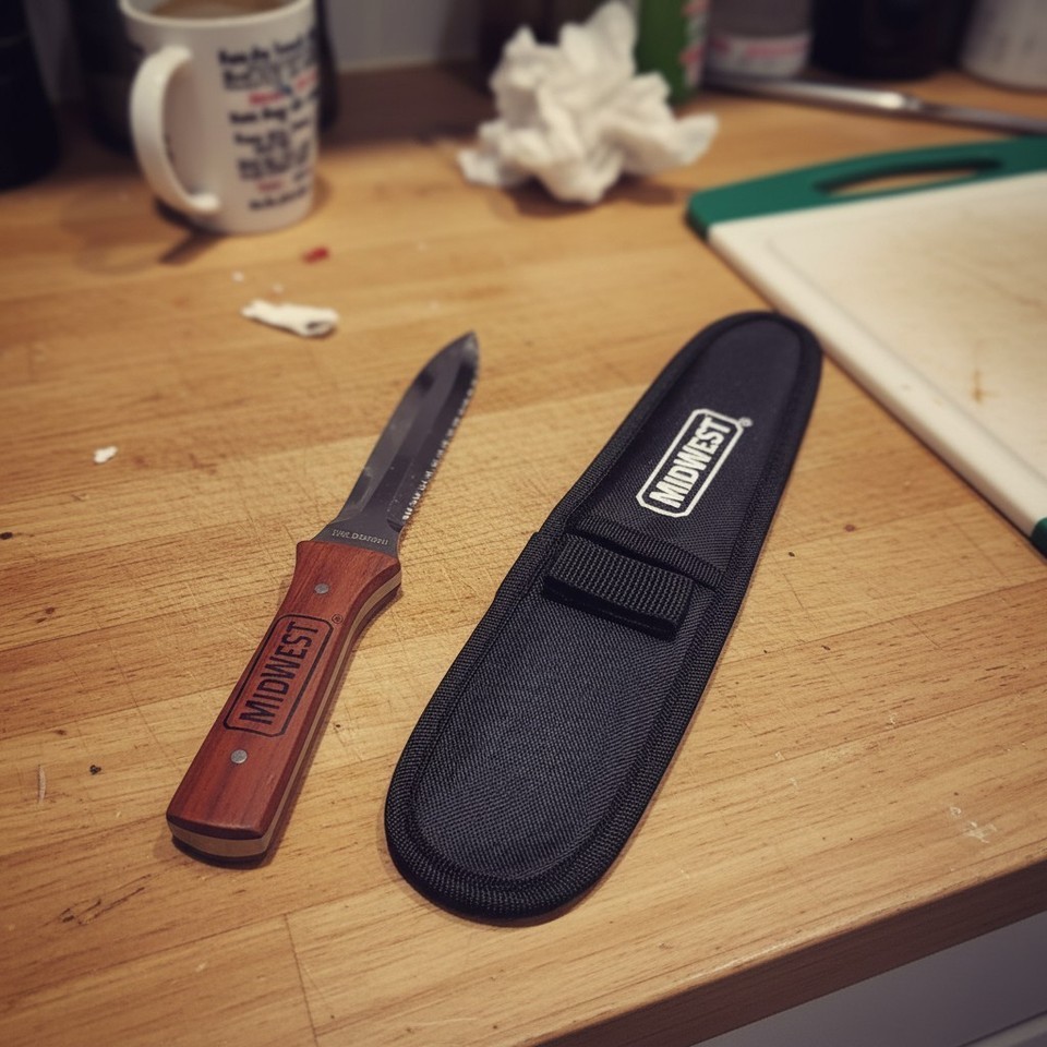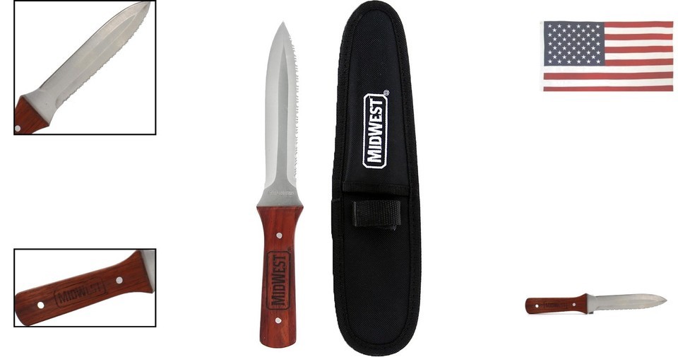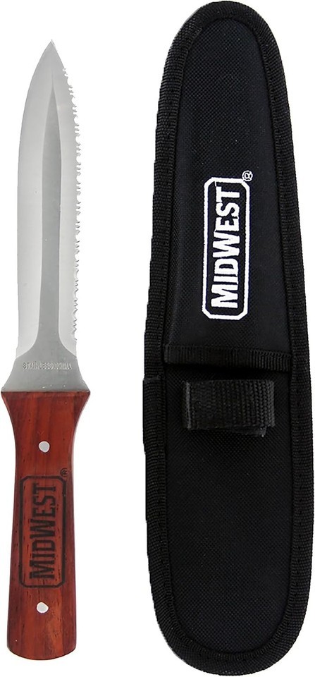 MIDWEST MWT-FDK01 Flex Duct Knife - 5" Double-Edge Stainless Blade - Contoured Wood Handle with Nylon Sheath