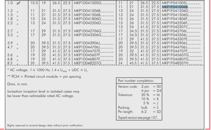MKP1F041006B00MSSD, MKP 10 1,0uF 250- 180~ |