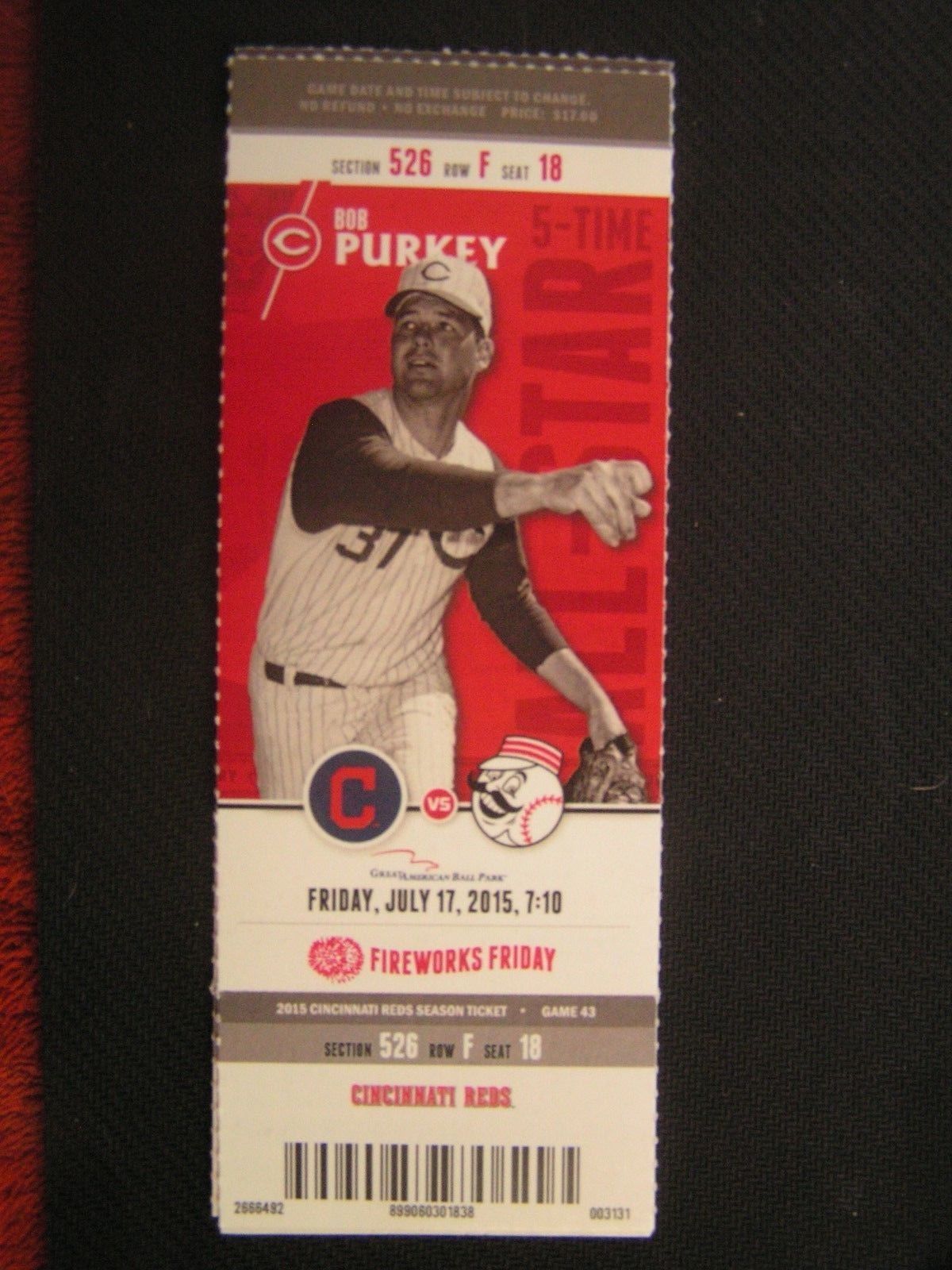 - MLB 2015 Cincinnati Reds Full Unused Ticket Stub Vs Cleveland 7/17/15