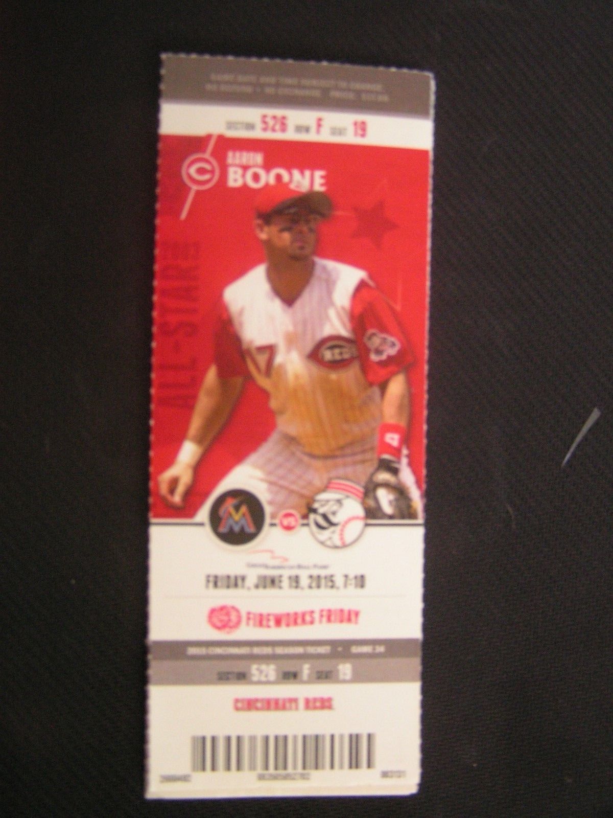 - MLB 2015 Cincinnati Reds Full Unused Ticket Stub Vs Miami 6/19/15